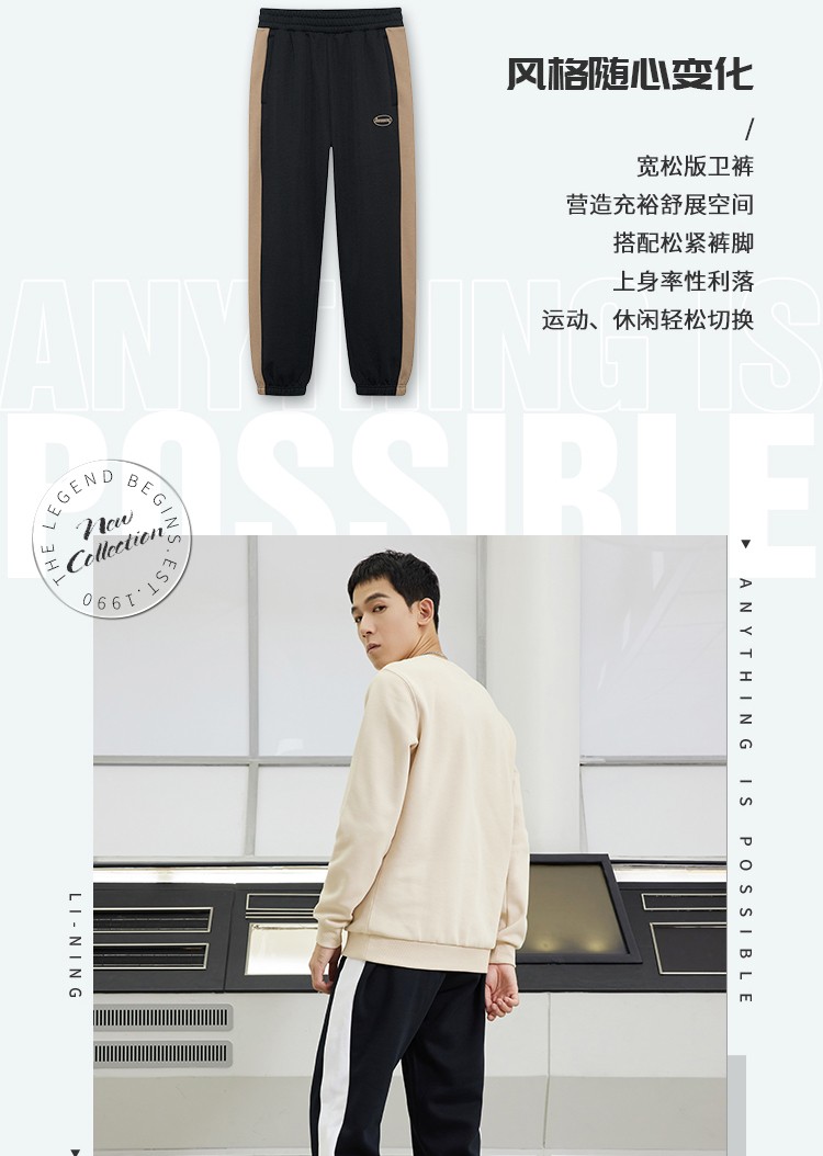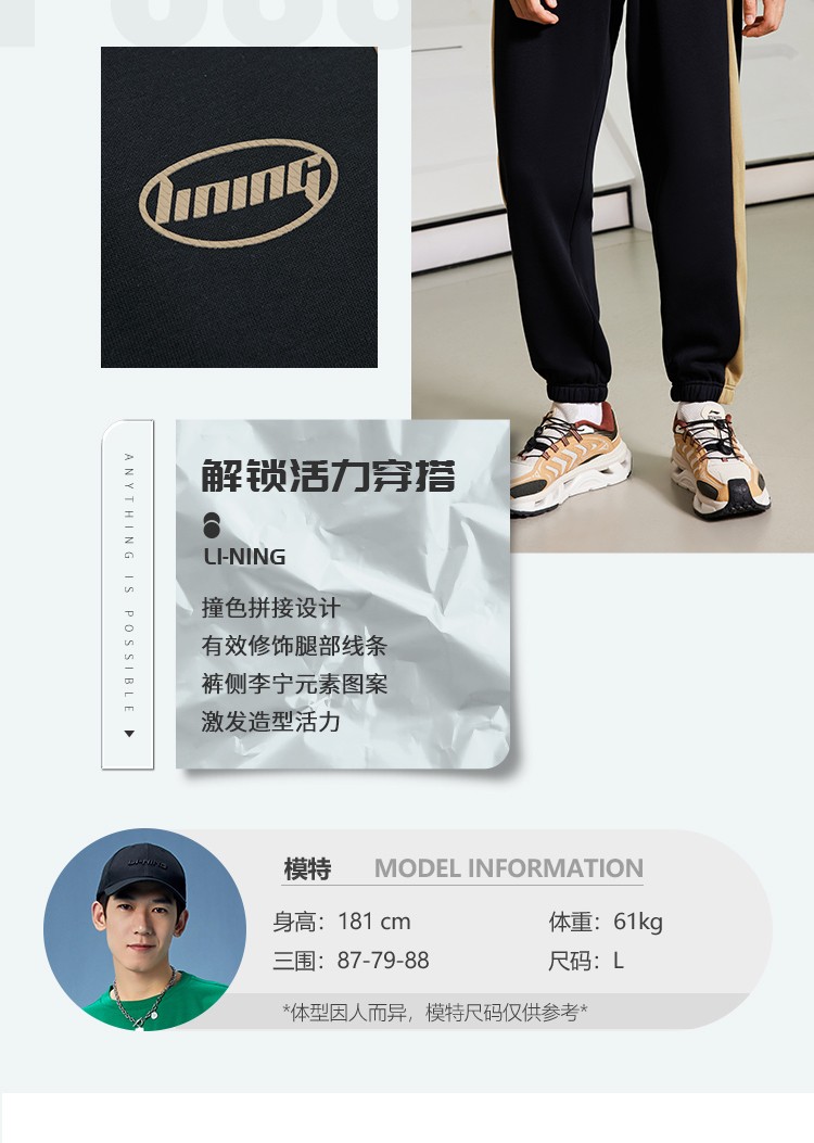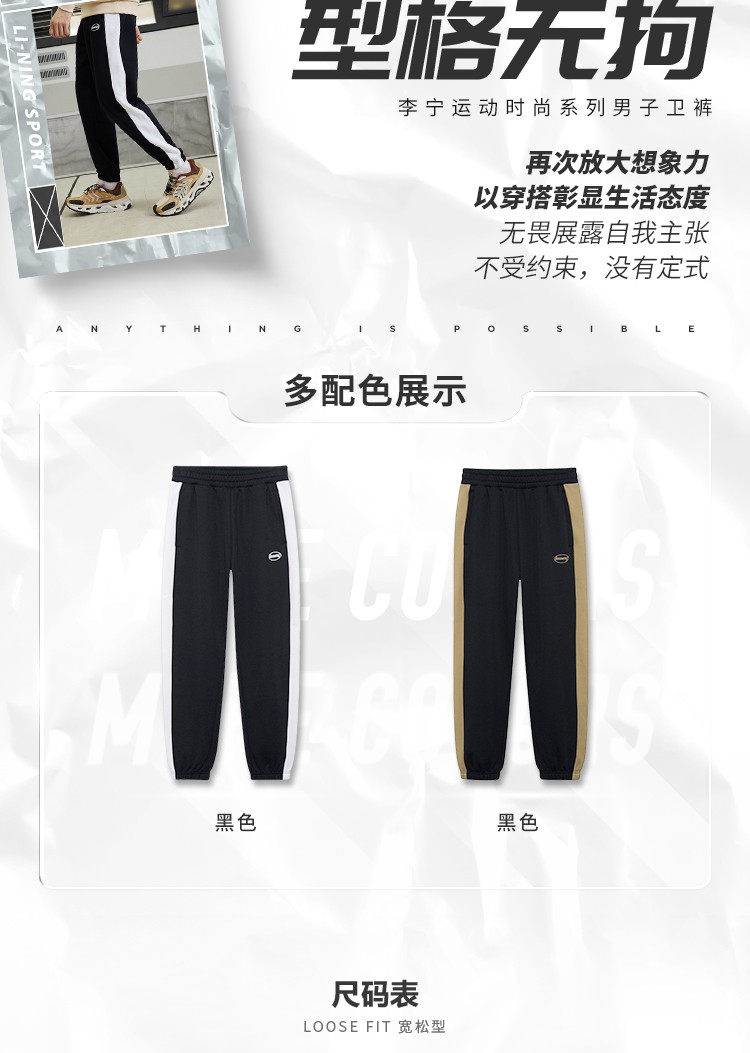 • 商品名称:李宁运动裤男2021秋冬裤子运动时尚系列休闲裤束脚宽松卫裤
