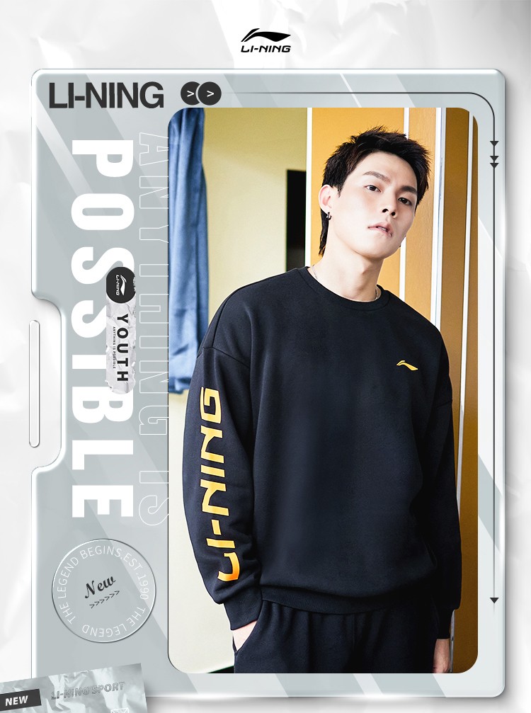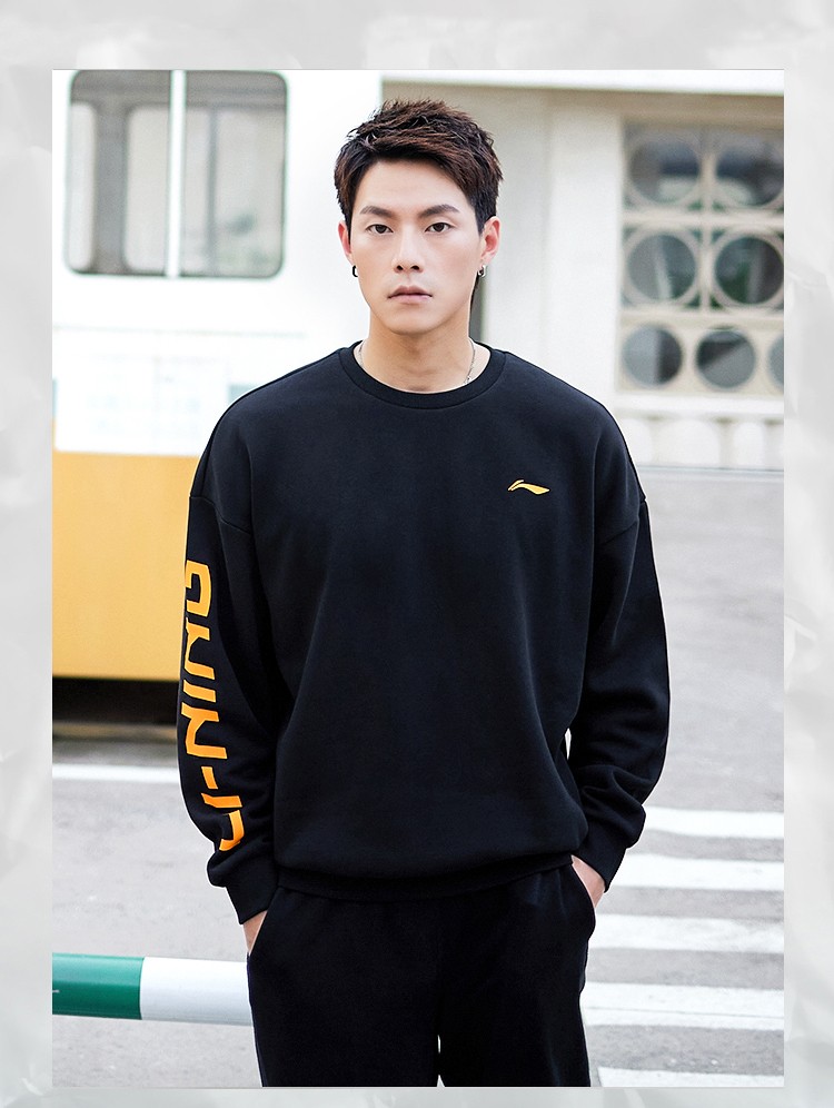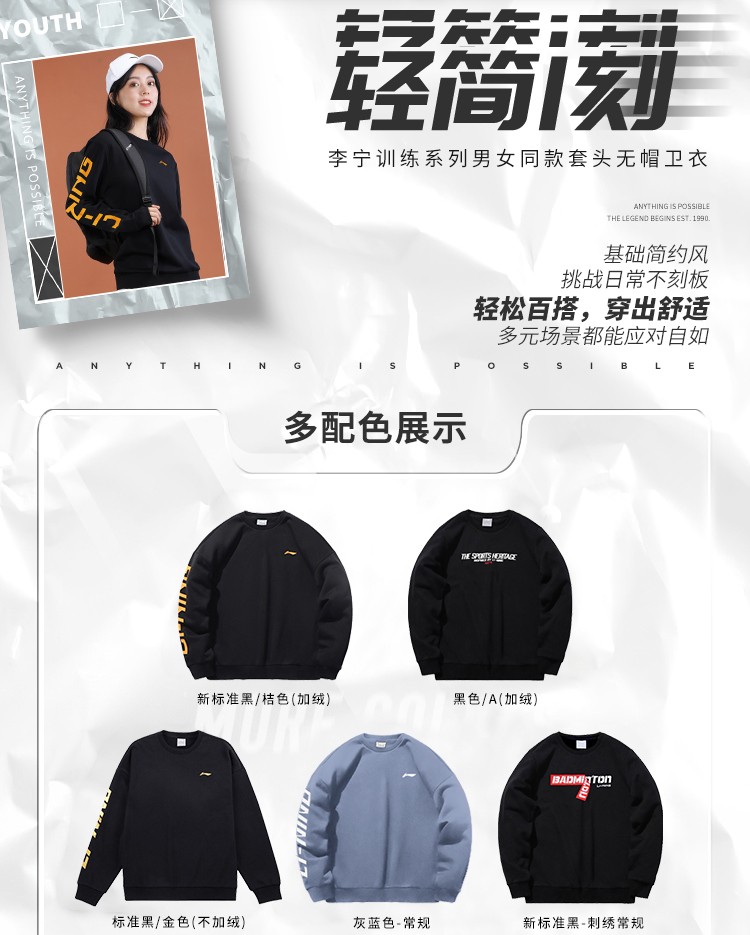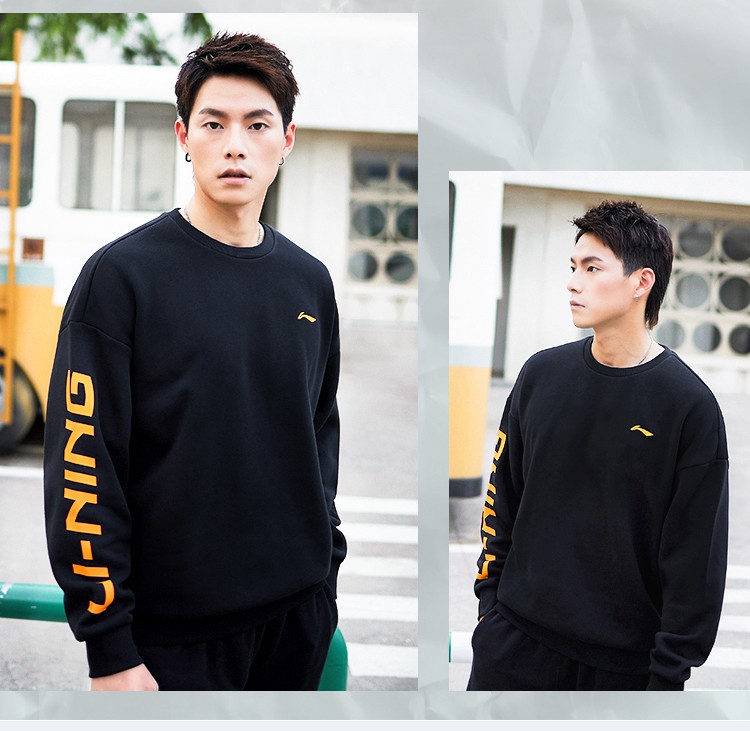 中国李宁卫衣长袖T恤秋冬季运动时尚系列打底衫套头衫男女同款加绒针织运动服饰