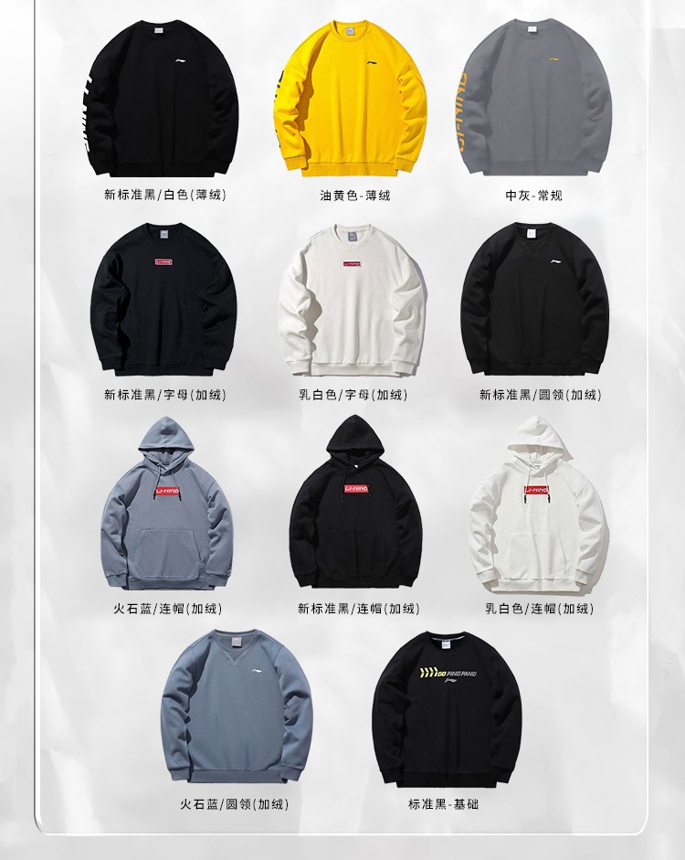 • 商品名称:中国李宁卫衣长袖T恤秋冬季运动时尚系列打底衫套头衫男女同款加绒针织运动服饰