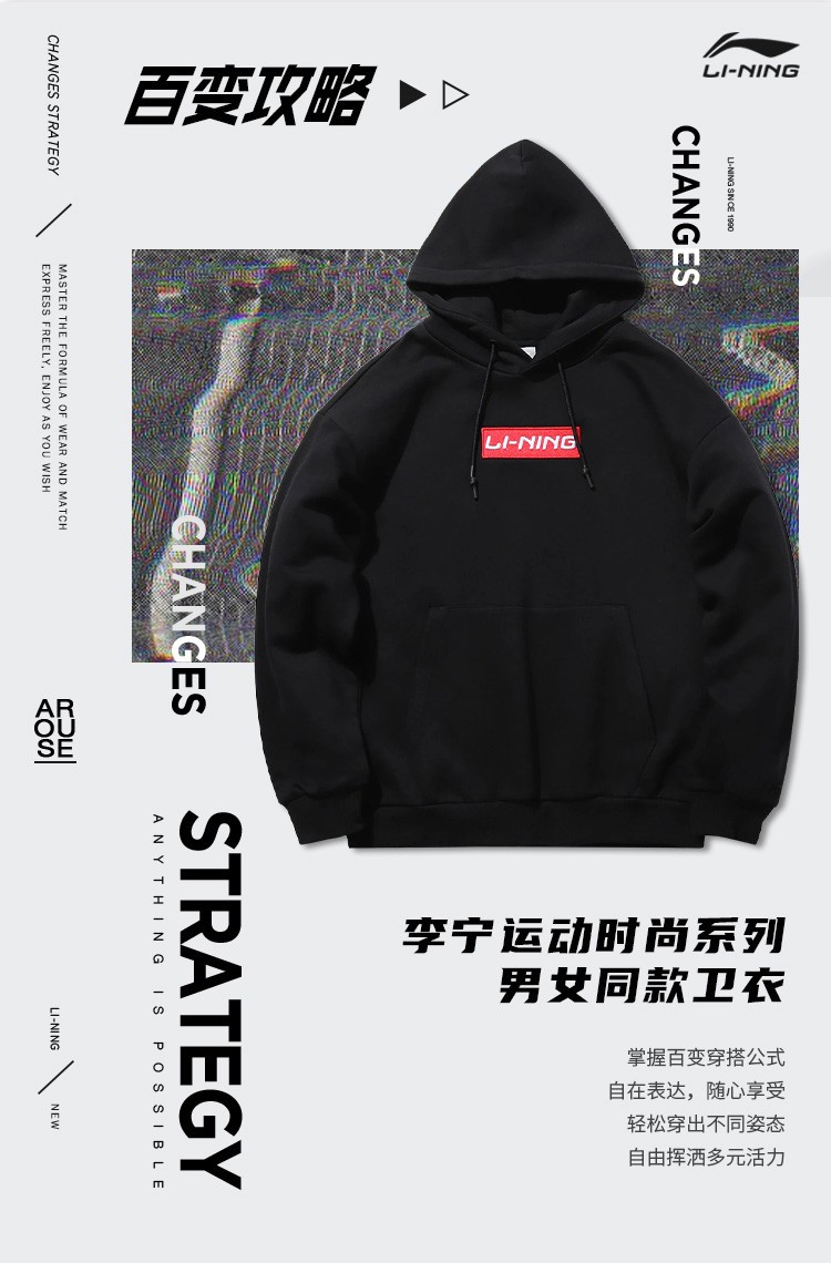 • 商品名称:李宁(LI-NING)卫衣男女装同款秋冬男子情侣时尚上衣休闲加绒厚连帽卫衣长袖运动服套头衫