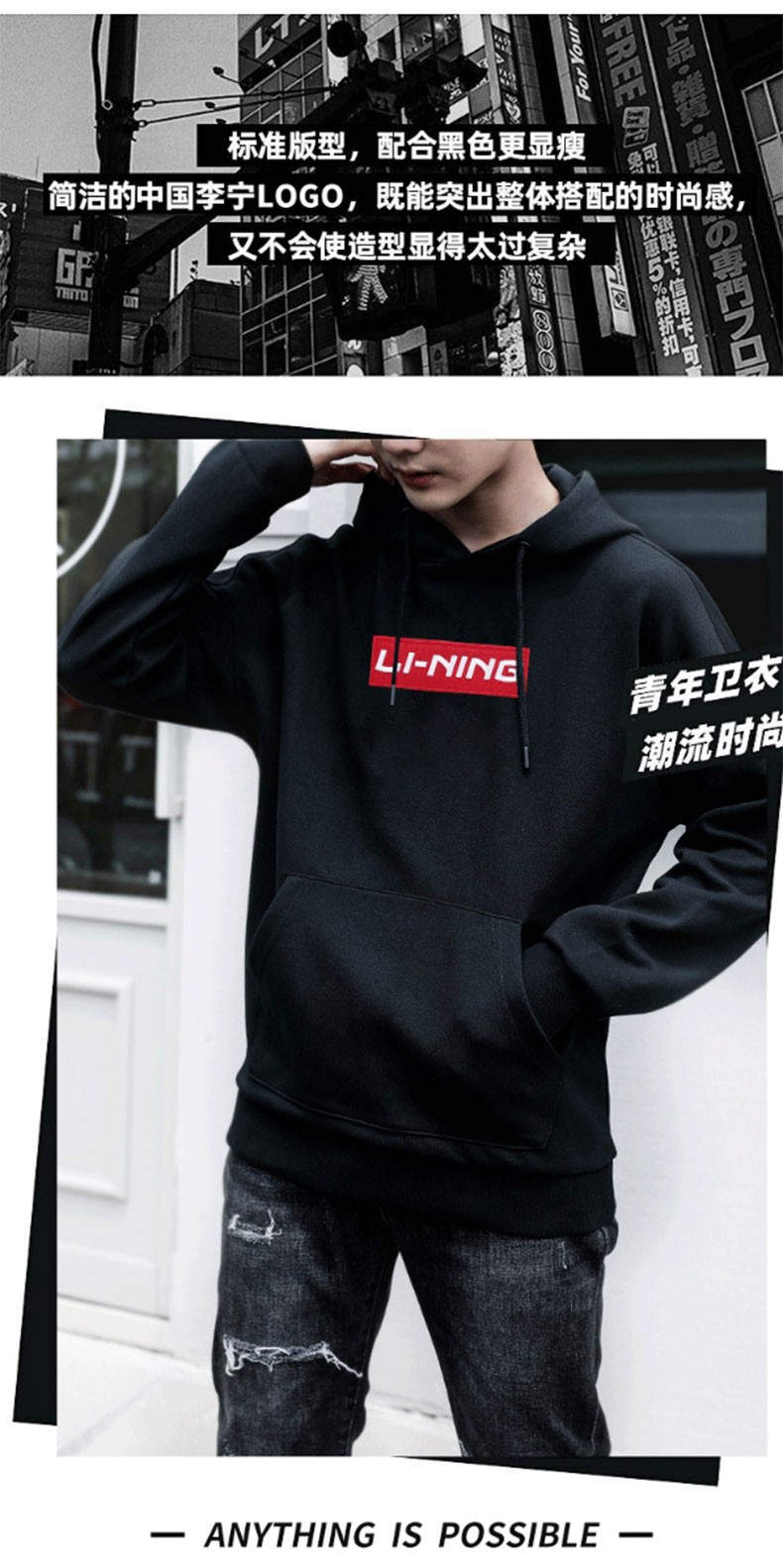 • 商品名称:李宁卫衣男女长袖T恤男连帽加绒男装秋冬季运动时尚系列套头衫