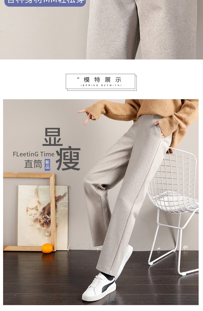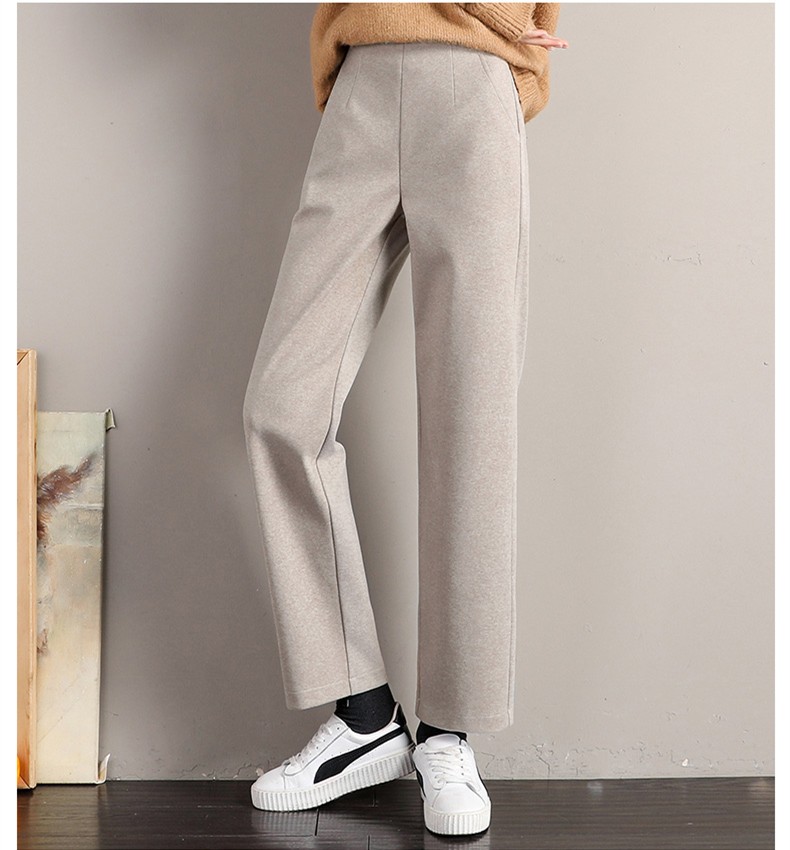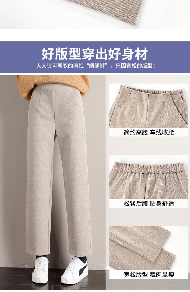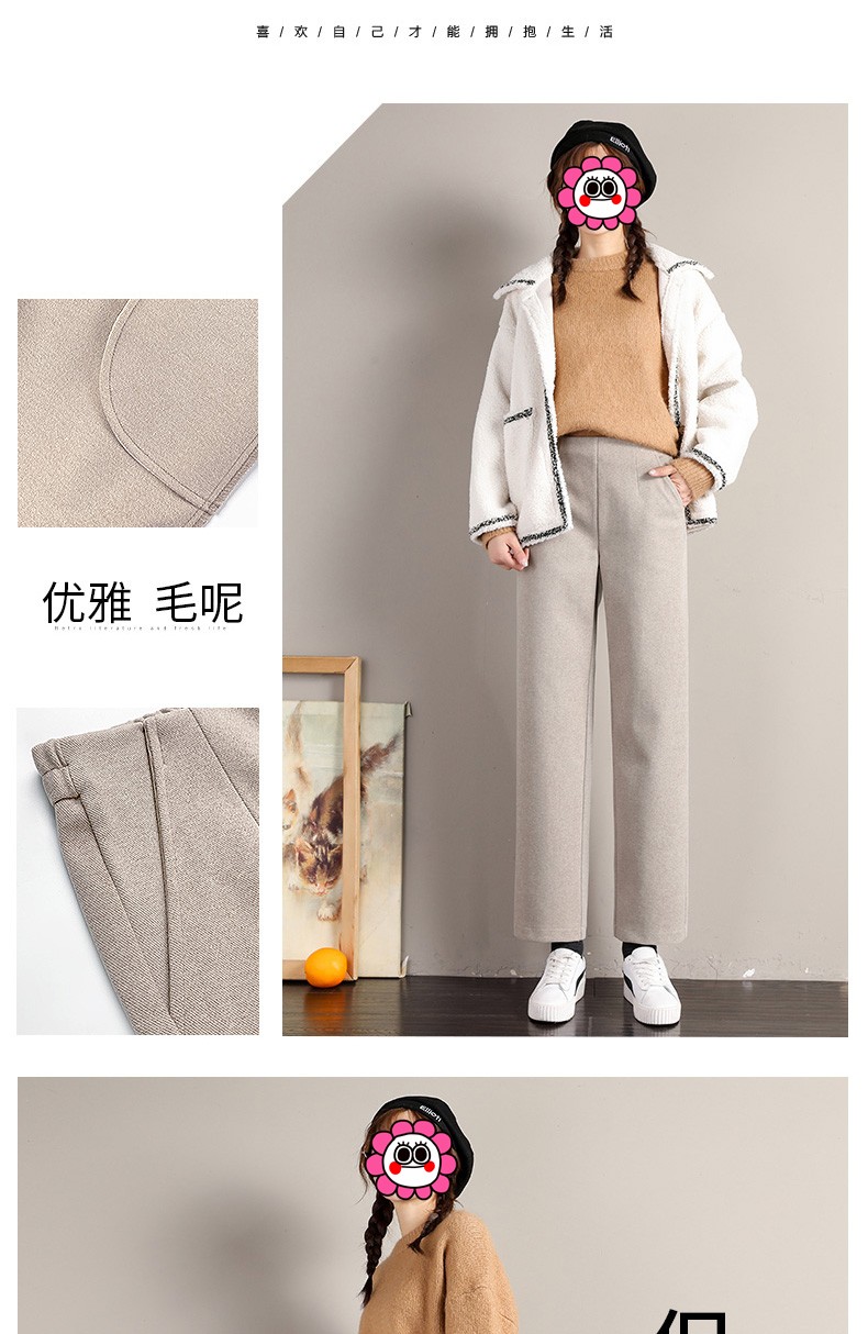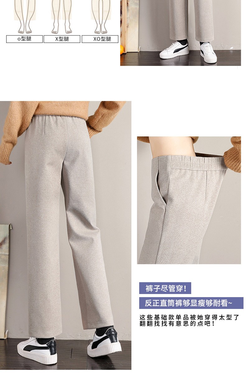 • 商品名称:裹洞休闲裤女阔腿毛呢裤女秋冬2021新款高腰宽松显瘦加厚垂感百搭九分直筒裤子 燕麦色