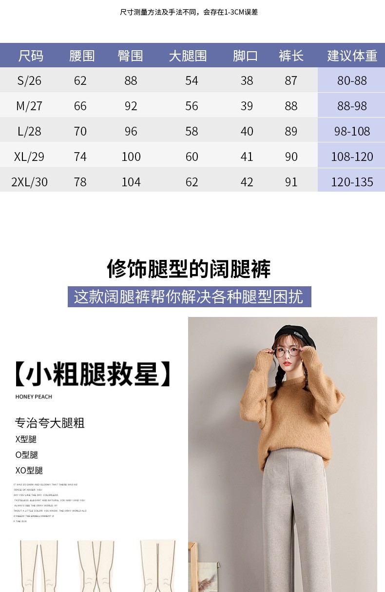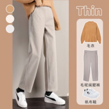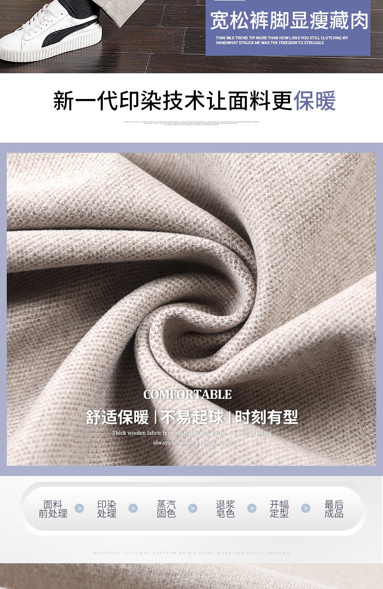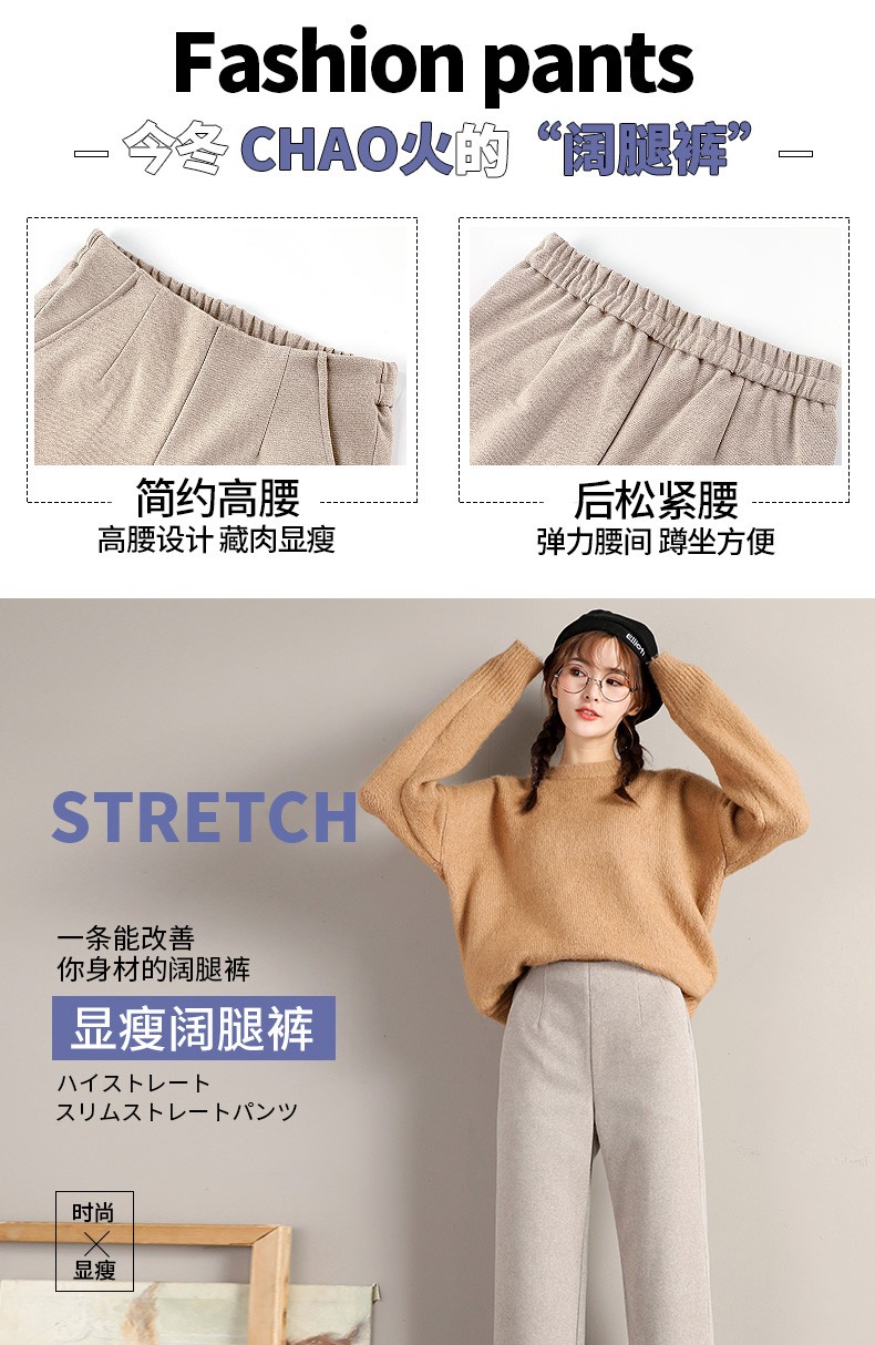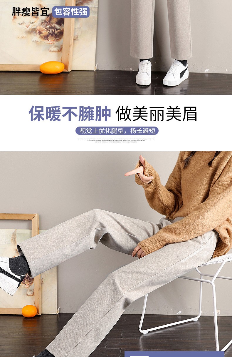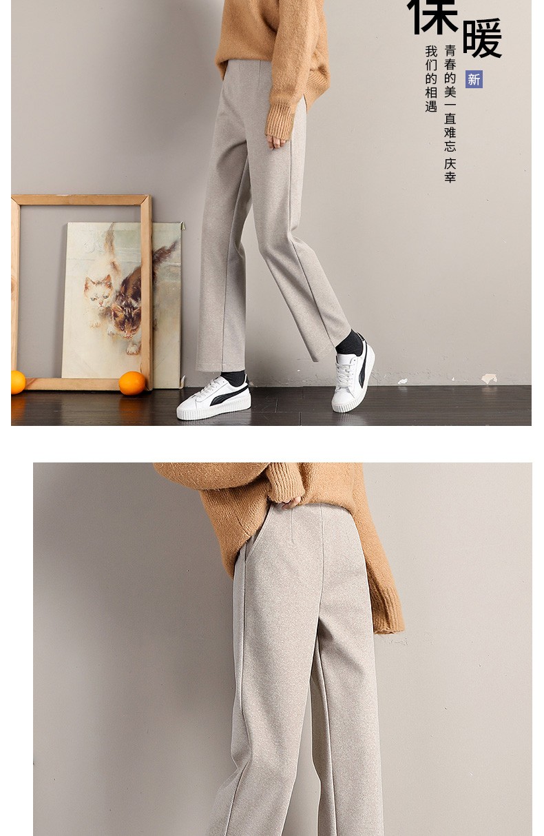 • 商品名称:裹洞休闲裤女阔腿毛呢裤女秋冬2021新款高腰宽松显瘦加厚垂感百搭九分直筒裤子 燕麦色