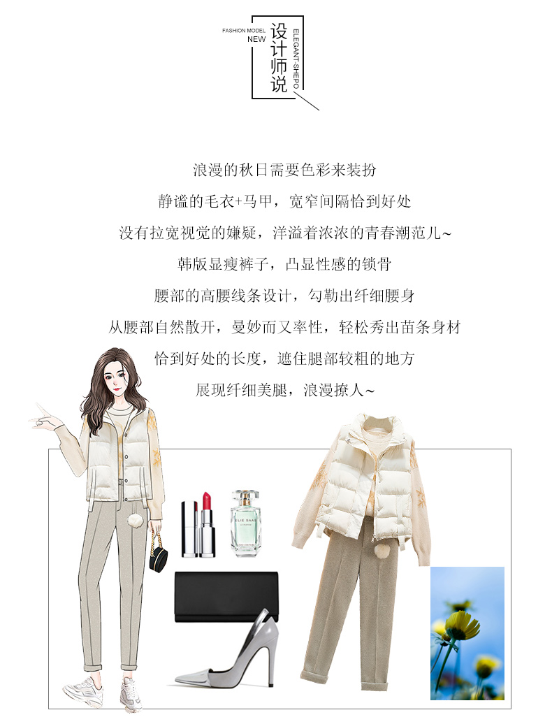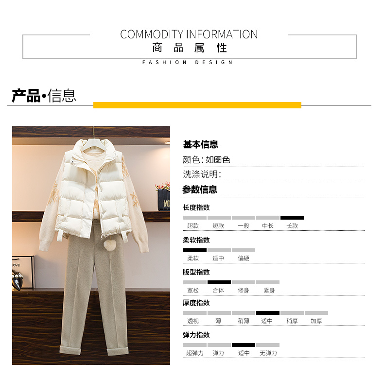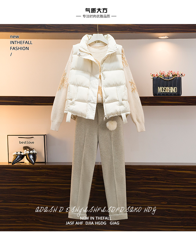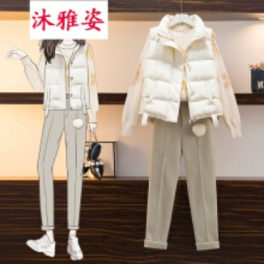 • 商品名称:沐雅姿休闲裤套装女装秋冬新款小个子显高炸街马甲棉衣显瘦加厚毛衣时尚百搭毛呢裤三件套套装