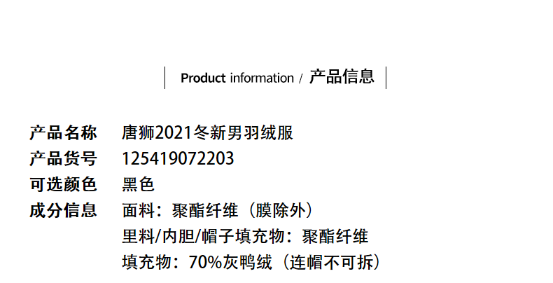 • 商品名称:唐狮2021冬季新款男羽绒服短款上衣外套