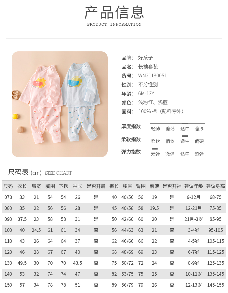 • 商品名称:好孩子童装儿童套装纯棉男童女童内衣套装新品宝宝衣服